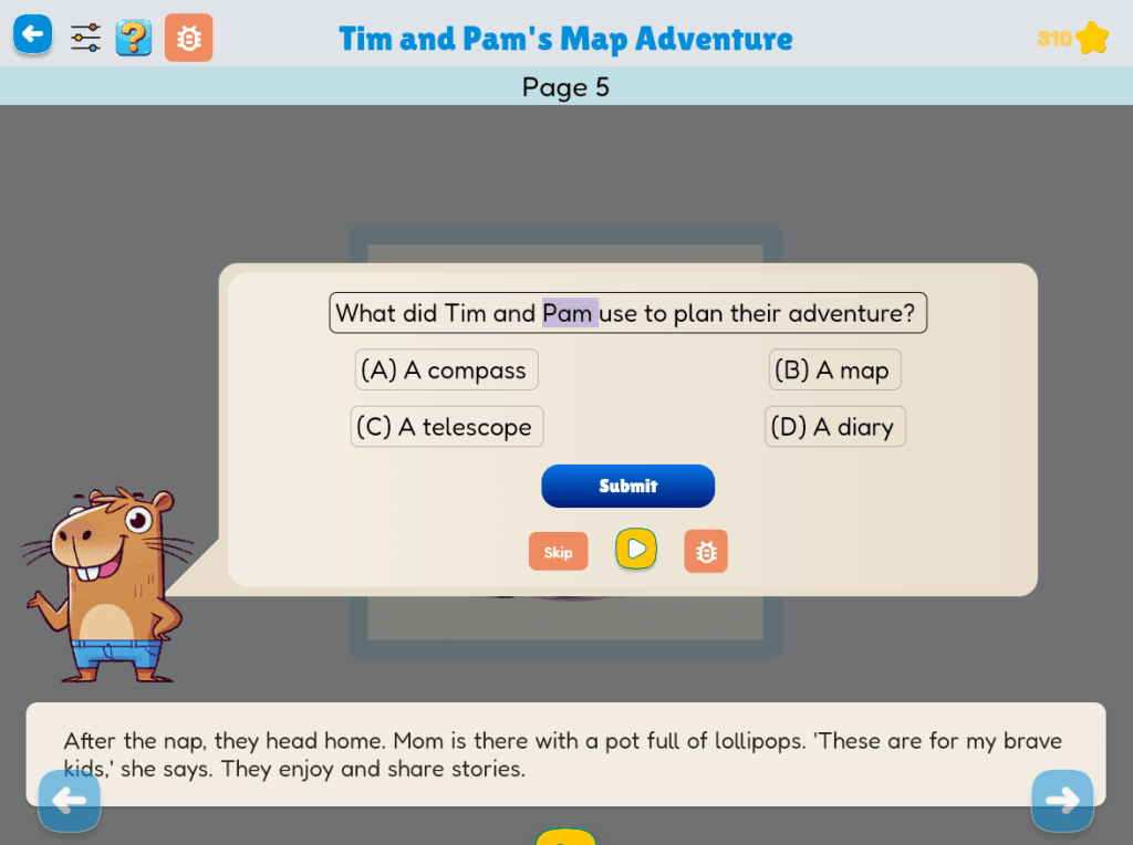 While our app primarily focuses on developing direct reading skills, it also integrates writing-based comprehension practice. Our open-response reading comprehension questions allow students to engage with texts beyond multiple-choice answers, fostering deeper understanding and synthesis of ideas. In earlier-level stories, students respond with short answers, while at higher levels, they are prompted to write longer responses that require text analysis and reflection. A meta-analysis by Graham and Hebert (2011) found that writing about texts significantly improves comprehension, retention, and critical thinking, reinforcing its role in literacy development.